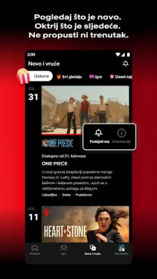 Katalog sadržaja na Netflixu neprestano raste, donoseći svježe naslove iz svih žanrova. Lako istražujte nove serije i filmove ili ponovno otkrivajte vječne favorite, sve spremno za trenutno gledanje na vašem uređaju. Posebnost je i inteligentni sustav preporuka: što više uživate u sadržaju, Netflix vas bolje upoznaje i nudi personalizirane prijedloge serija i filmova koji savršeno odgovaraju vašem ukusu, osiguravajući da nikada ne ostanete bez nečega novog za pogledati.
