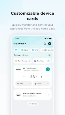 SmartHome (MSmartHome) donosi sveobuhvatnu kontrolu nad vašim pametnim domom. Upravljajte uređajima poput klima uređaja i perilica bilo kada, s bilo kojeg mjesta putem telefona ili sata. Integracije s Alexom i Google Assistantom osiguravaju moćnu glasovnu kontrolu i automatizaciju. Pratite status uređaja i primajte obavijesti s lakoćom. Dobitnik Nagrade Crvena Točka 2023.